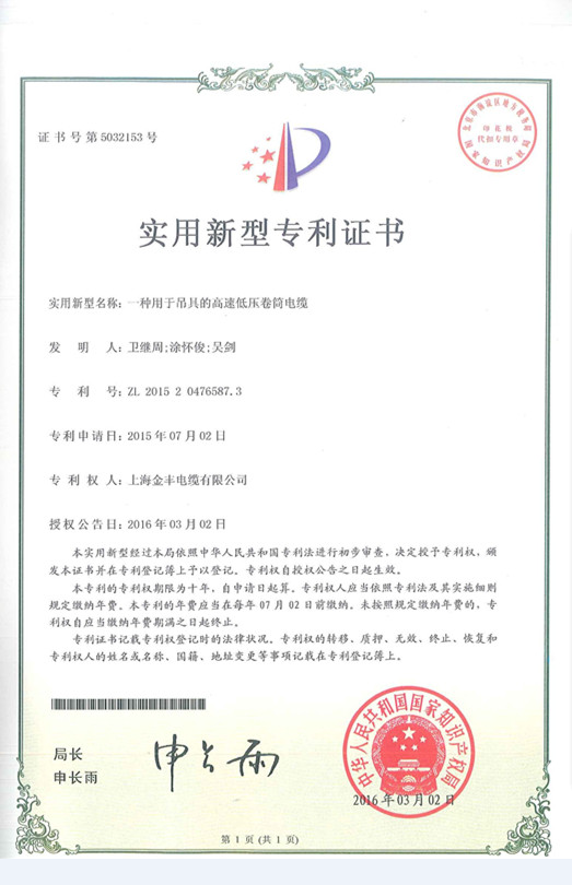 本實用新型提供了一種用于吊具的高速低壓卷筒電纜,其包括抗拉中芯。所述抗拉中心為航空鋼絲繩外包覆彈性體,抗拉中心外絞合有若干層線芯,最外層的所述線芯外包覆有加強層,所述加強層與抗拉中芯之間的空隙內(nèi)擠包內(nèi)護層。且加強層外包裹有外皮層,內(nèi)外護層。