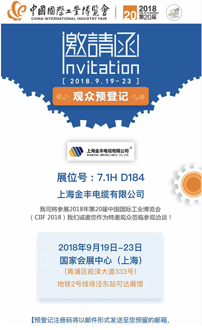 金豐電纜9月19日-23日在國(guó)家會(huì)展中心(上海)期待您的蒞臨(7.1H D184)